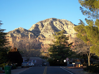 Well, there was a little snow in Flagstaff (it's mostly already in piles in the shopping center), and the clouds completely obscured the mountains, but no snow in Sedona. About an hour after we left Flagstaff on Sunday, the police closed Oak Creek Canyon because of icy roads and it remained closed for much of the next day. But snow in Sedona? Nope!